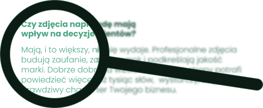 Wykonamy zdjęcia, które po pierwsze wyróżnią Twoją firmę, następnie zbudują zaufanie, i wreszcie wzmocnią tożsamość marki.
